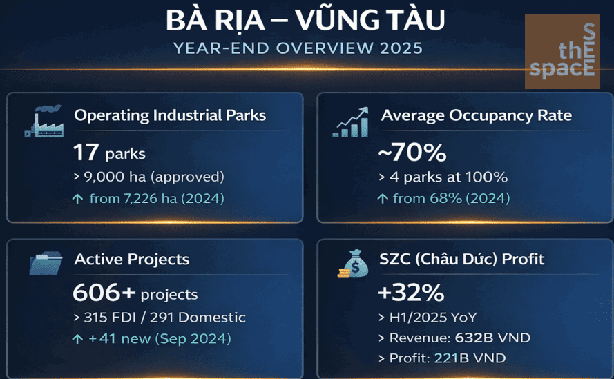 Information in this article is compiled from: CBRE Vietnam Q2/2025, Cushman & Wakefield MarketBeat Q3/2025, Savills Vietnam H2/2025 Industrial Report, the Ba Ria – Vung Tau IP Management Authority, and official provincial publications.