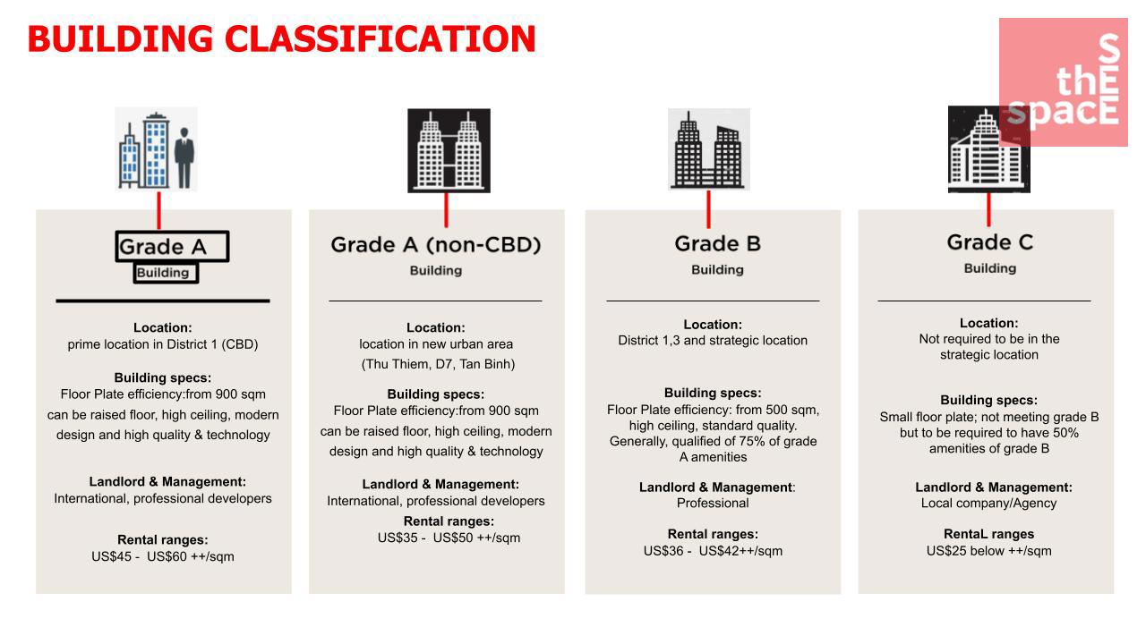 Classifying office buildings by class A, B, C helps parties in the industry have a standard framework to evaluate the quality of office buildings for rent. These standards are used by design units, construction contractors, investors, lessors and tenants to make the implementation of related work more coherent, clear and simple.