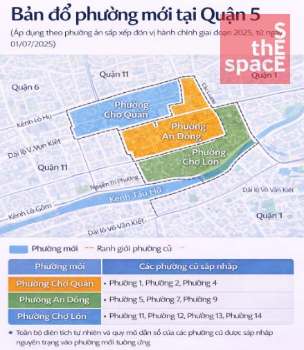 Theo phương án sắp xếp đơn vị hành chính giai đoạn 2025, Quận 5 thực hiện điều chỉnh lại toàn bộ hệ thống phường nhằm tinh gọn quản lý và đồng bộ dữ liệu hành chính đô thị.