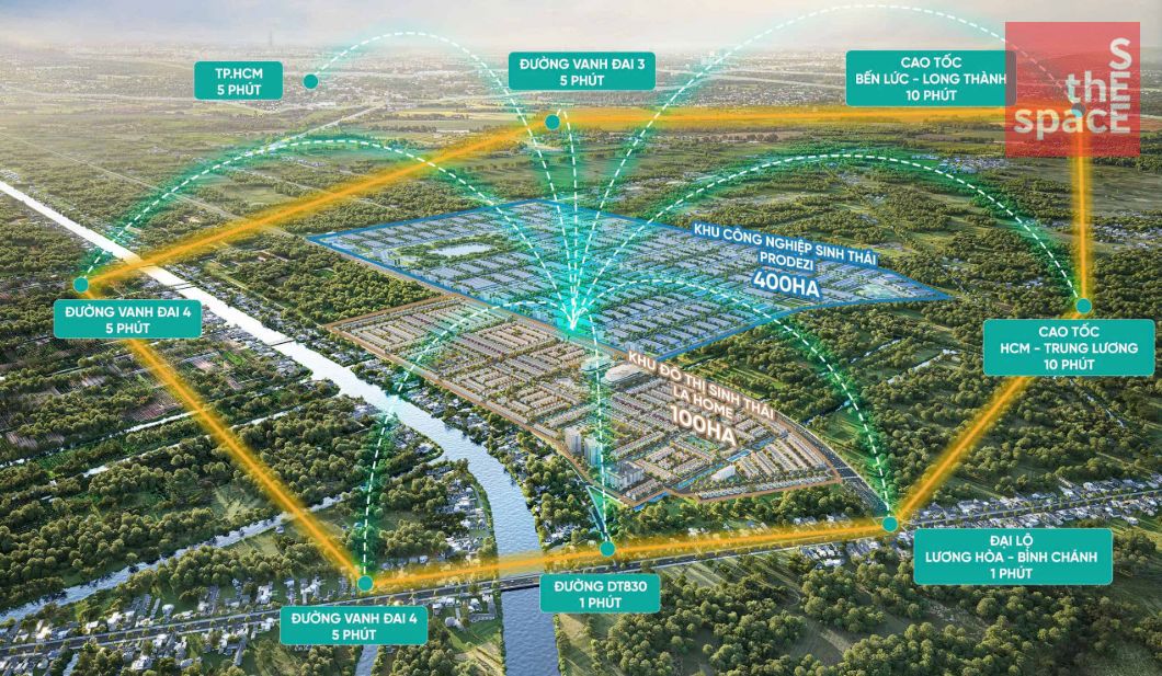 KCN PRODEZI nằm tại xã Lương Hòa, vị trí kết nối giữa TP.HCM – Long An – Tây Ninh – Campuchia, thuận lợi cho xuất nhập khẩu và logistics.