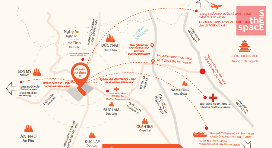 - Gần 3 KCN lớn: VSIP Nghệ An (25km), VSIP Hà Tĩnh (33km) và WHA Nghệ An (41km)