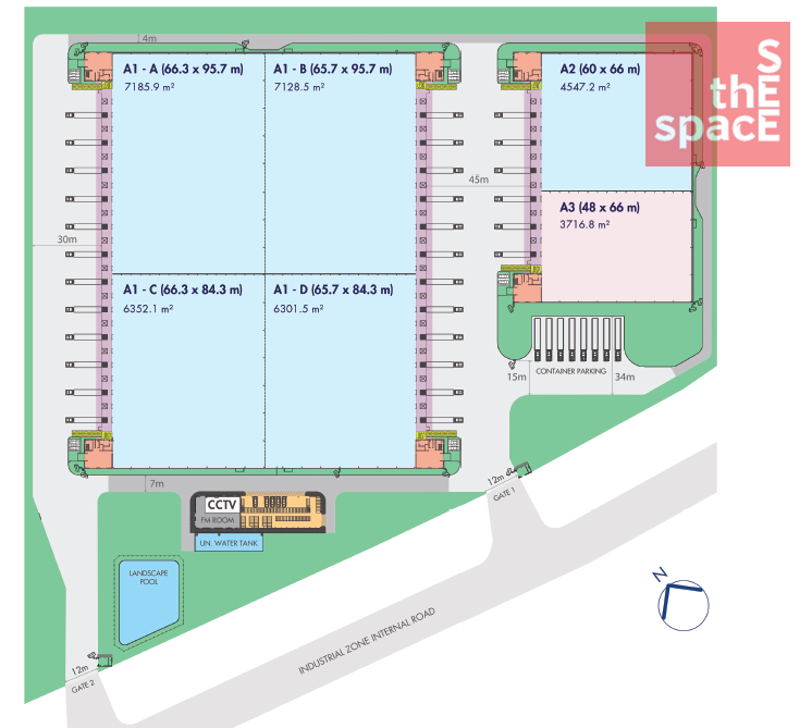 📐 Warehouse/Factory Area: Flexible from 3,716 m² – 6,360 m² – 7,185 m²