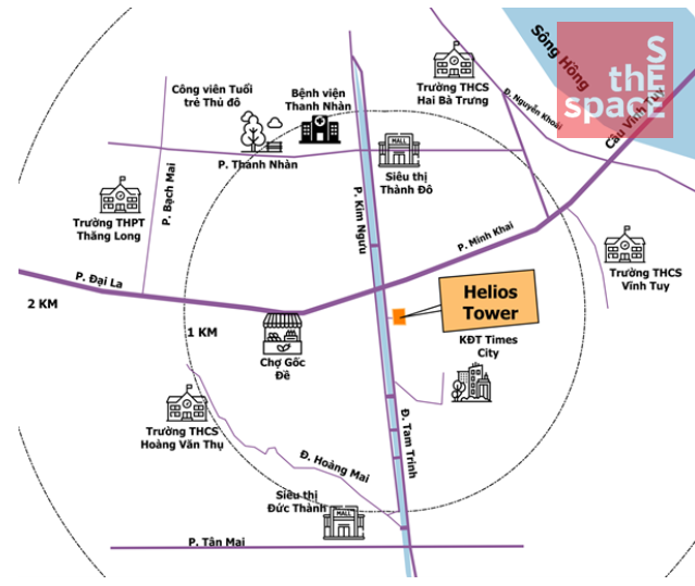Tòa nhà Helios Tower nằm tại số 75 Tam Trinh, quận Hoàng Mai, Hà Nội. Tọa lạc ngay cầu Mai Động, gần các khu vực trọng yếu, các trung tâm thương mại, bệnh viện, trường học nên khi thuê văn phòng tại đây bạn sẽ có nhiều cơ hội để phát triển và kết nối linh hoạt với khách hàng, đối tác qua các trục đường huyết mạch của khu vực.